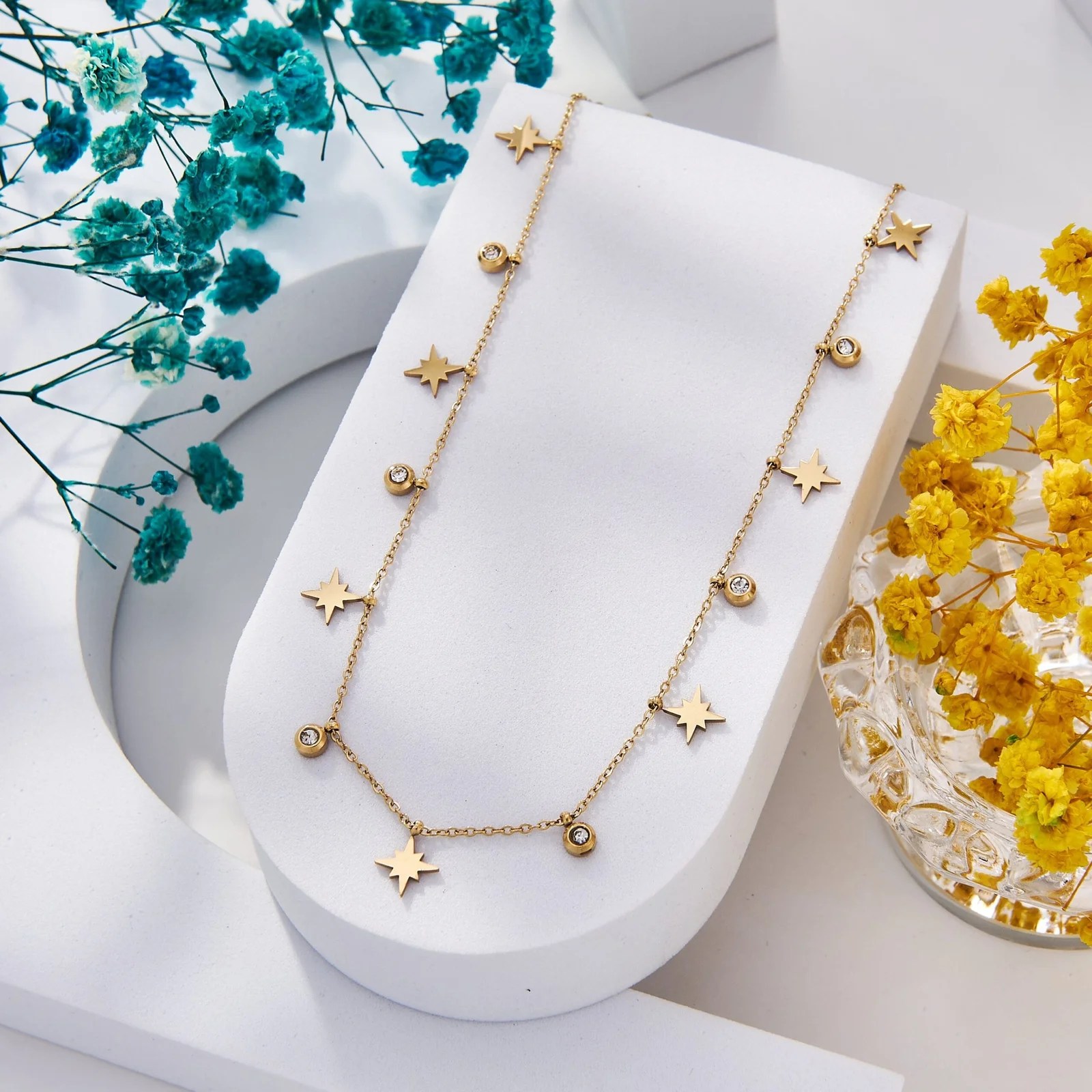 قلادة ذهبية بتصميم أهلة مرصعة بأحجار براقة